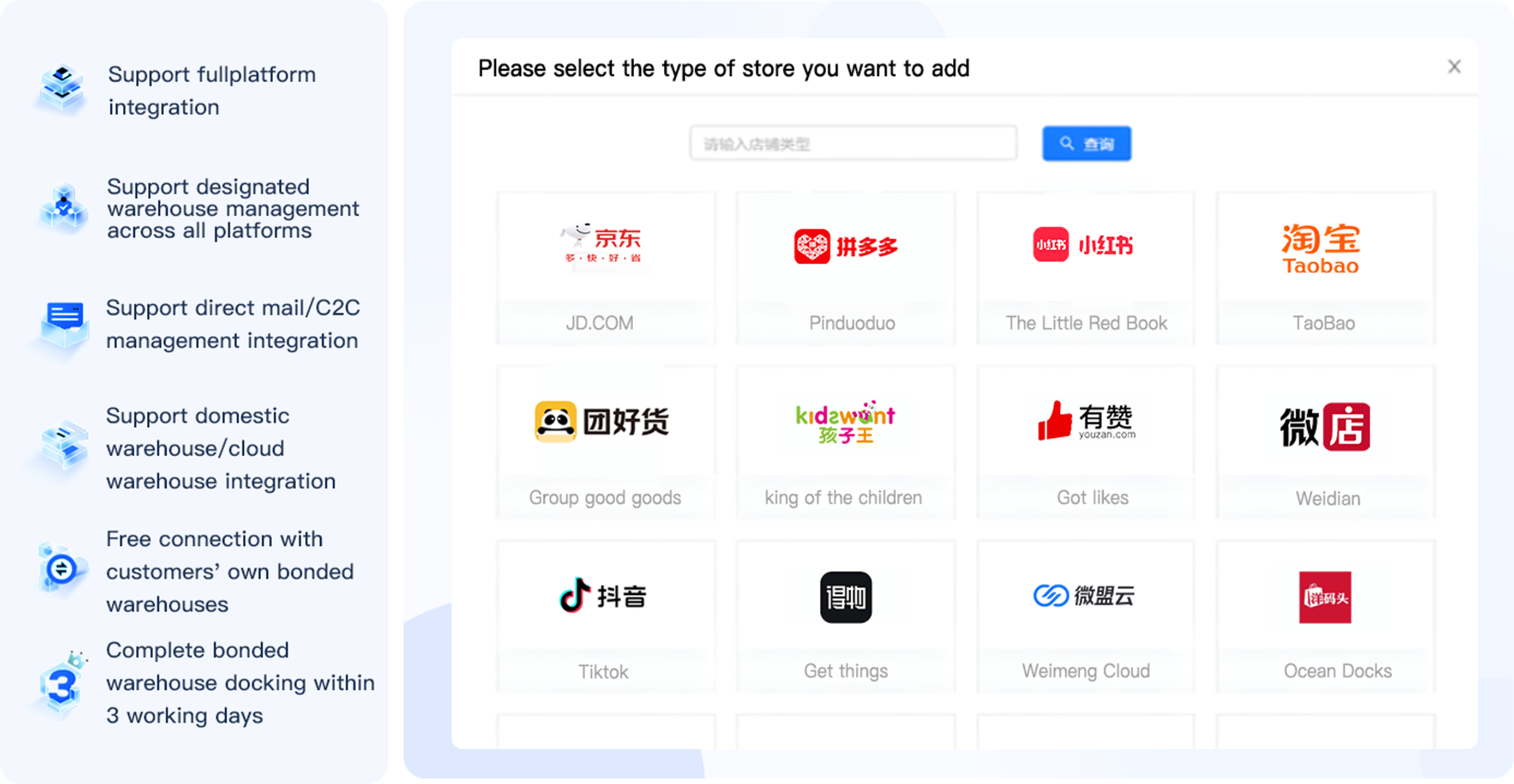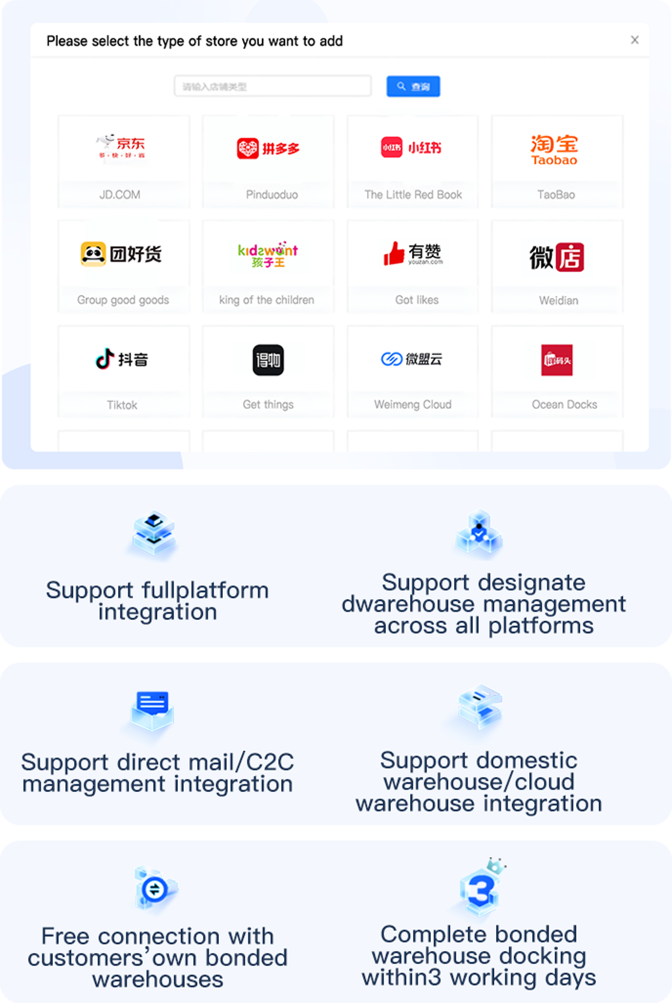 跨境云全国合作开发40+保税仓, 保税仓系统针对客户的平台布局、商品类别、销售模式、物流运输等不同需求,智能化匹配符合客户需要的优质保税仓,提供更加便捷高效的服务与业务
