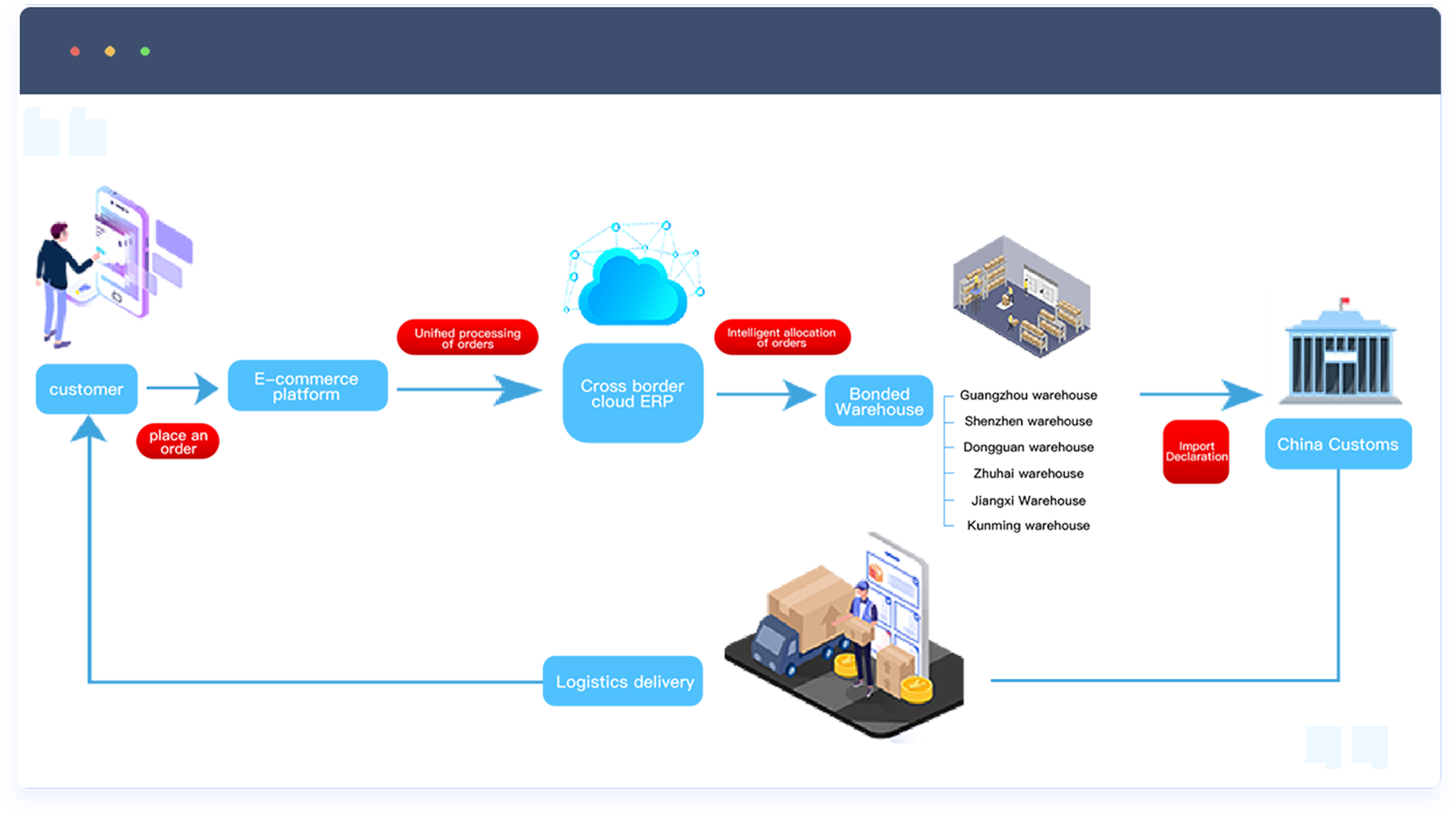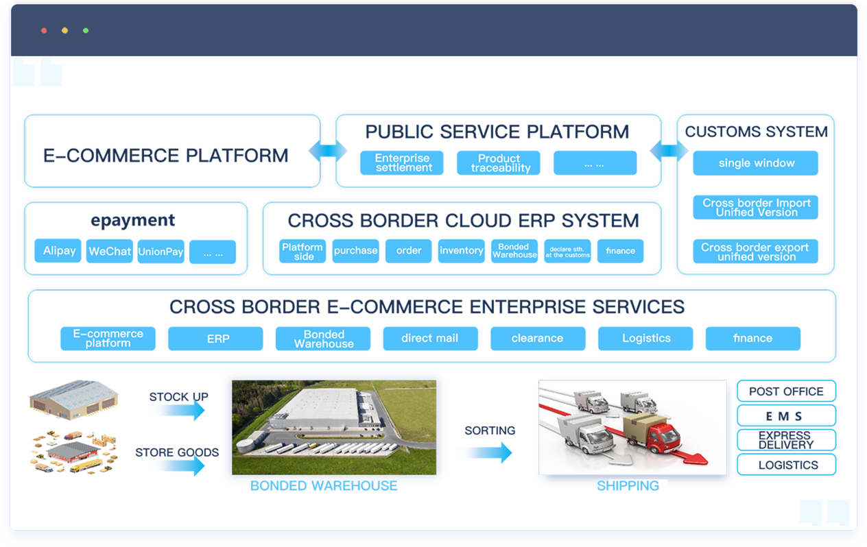 跨境云可为保税仓企业提供定制化保税仓系统,同时可为跨境商家提供关务、物流、保税仓对接、直邮对接等一站式综合解决方案